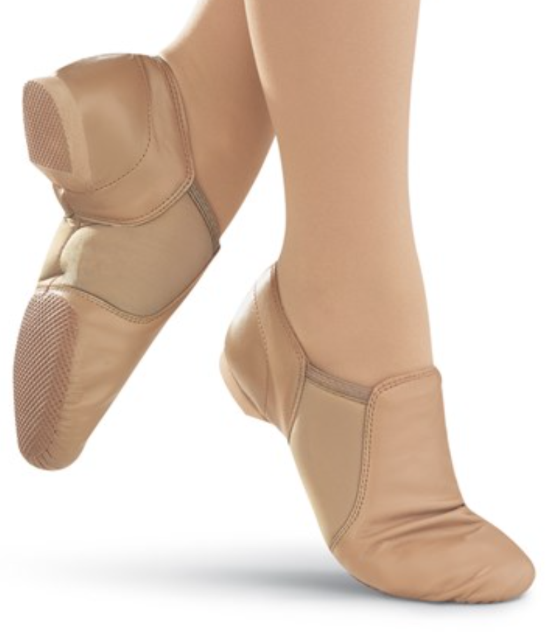 This genuine leather jazz shoe offers a flexible split sole for ease of movement during any routine. The synthetic rubber sole and EVA front-foot patch and heel grip are designed to allow for maximum stability and effortless turning when practicing and performing. A breathable cotton lining keeps feet cool and dry, and padded neoprene inserts provide arch support. Low profile and easy slip-on style make this a go-to favorite for studio and stage.